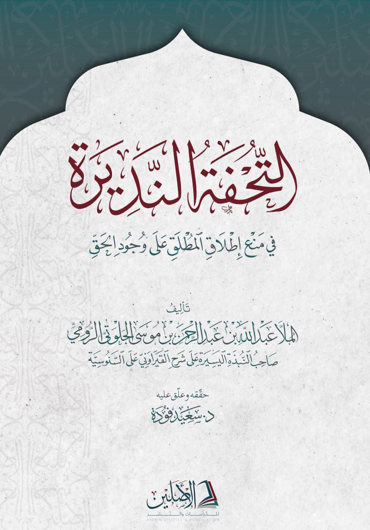 فهذا كتابُ «التحفة النديرة؛ في منع إطلاق المُطلَق على وجود الحق» للملا عبد اللّٰـه الجلوتي الرومي؛ وضعَه بغرضِ مناقشة الشيخ عبد الغني النابلسي في رسالته «إيضاح المقصود من وحدة الوجود»، وقد كنتُ رددتُ عليها في «منح الودود» قبل بضع سنوات ولمَّا أعلَم برد الجلوتي بعد، فلما وقفتُ عليه وآنستُ منه تحقيقًا ودقَّةً؛ ومن صاحبه طولَ باعٍ في هذا الفنّ وتمكُّنًا؛ عزمتُ على نشره ليفوحَ عطرُ ما حَواه من المعارف..